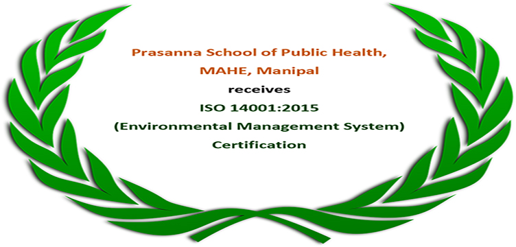 Prasanna School of Public Health, MAHE, Manipal has received the ISO 14001:2015 Environmental Management System Certification.