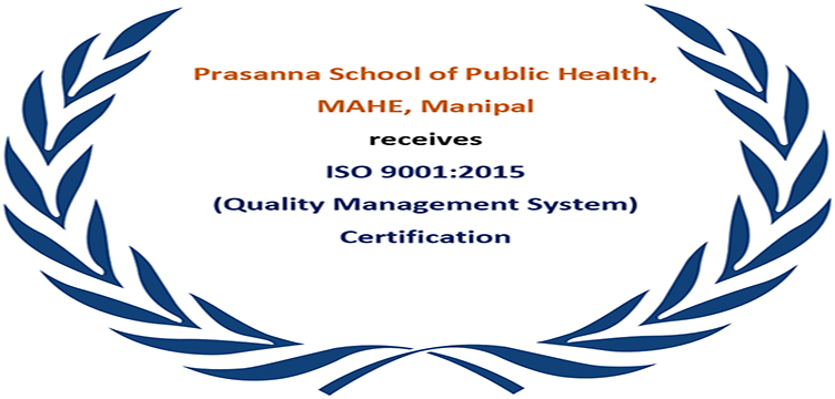 Prasanna School of Public Health, MAHE, Manipal has received the ISO 9001:2015 Quality Management System Certification.
