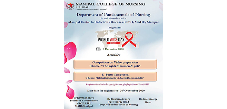 Manipal Centre for Infectious Diseases in association with Department of Community Medicine (KMC) and Manipal College of Nursing organized several awareness events as part of World Aids Day 2020.