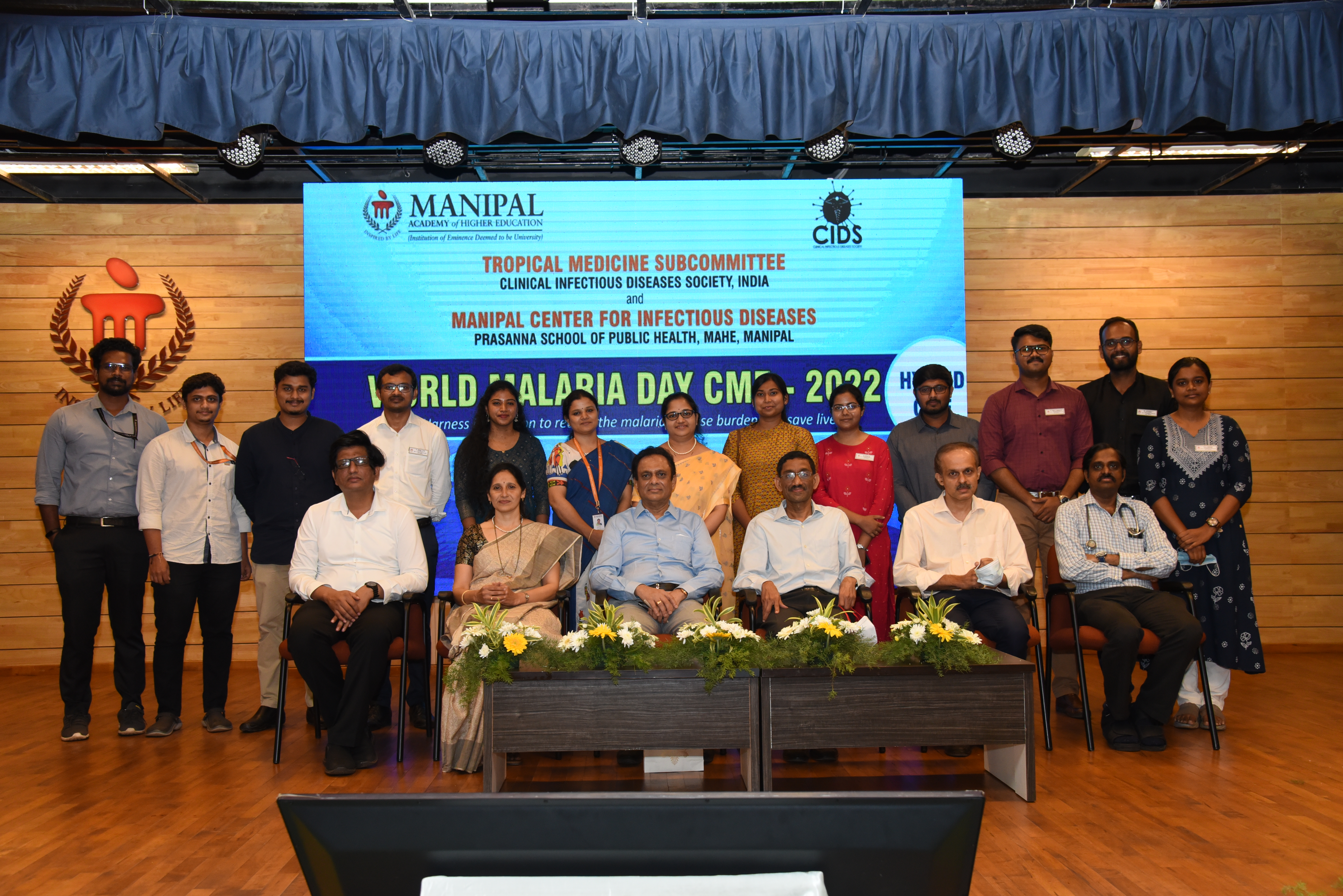 World Malaria Day CME (Continuing Medical Education) was a hybrid event jointly organised by Clinical Infectious Diseases Society, India and Manipal Center for Infectious Diseases, PSPH, MAHE. The programme had resource people from overall India and discussed topics including treatment of malaria and mixed infections, epidemiology of relapse, treatment efficacies of primaquine and tafenoquine, radical cure and role of G6PD in radical cure of malaria, Issues such as morbidity and mortality data in India, importance of surveillance, use of technology, vector control and challenges of asymptomatic malaria, ongoing research on new molecules for malaria treatment and vaccine.