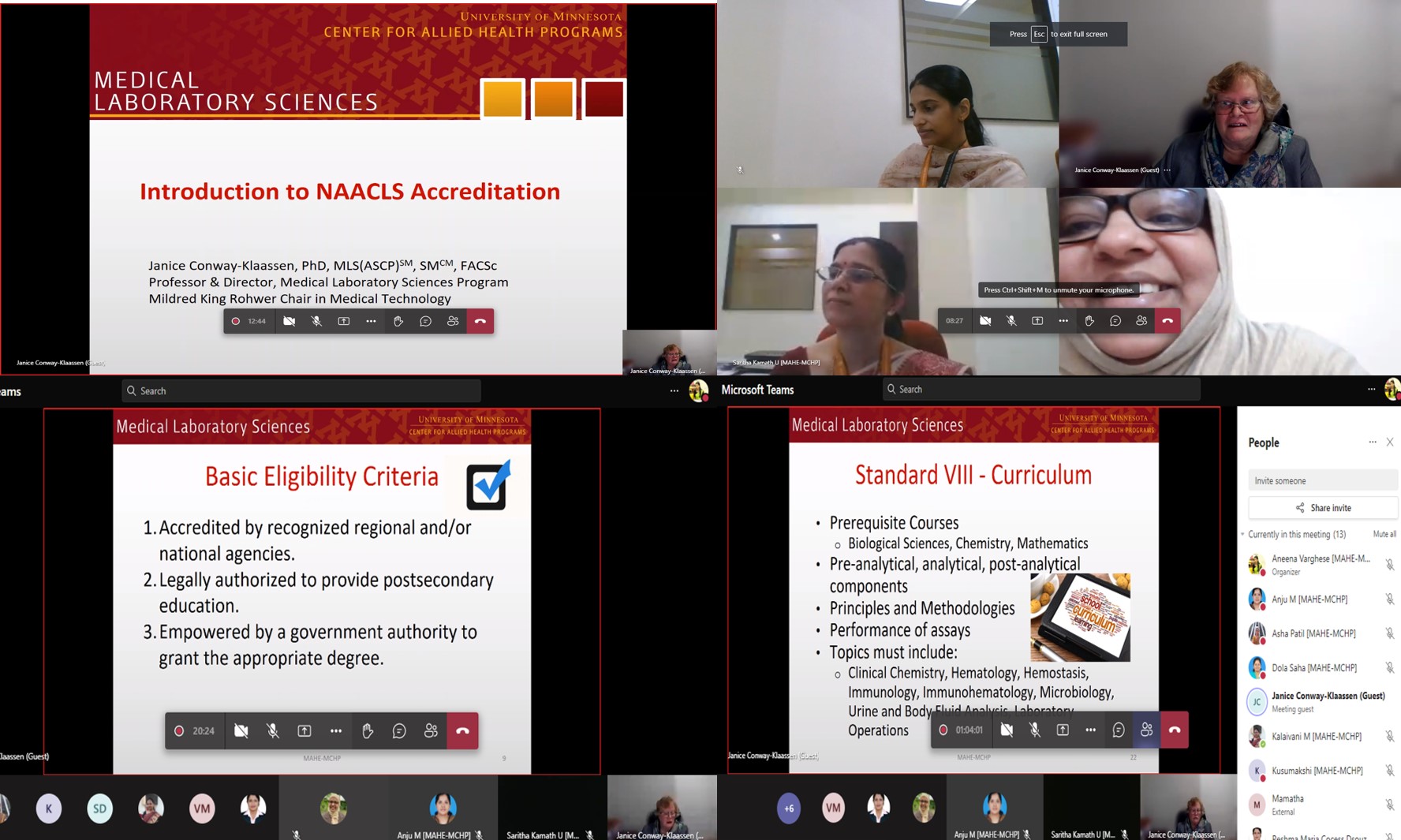 Dr. Janice M. Conway-Klaassen, holds a doctoral degree and Professor and Director, Medical Laboratory Sciences Program, Mildred King Rohwer Chair in Medical Technology, University of Minnesota. She is also an adjunct faculty of Department of MLT, MCHP, MAHE.