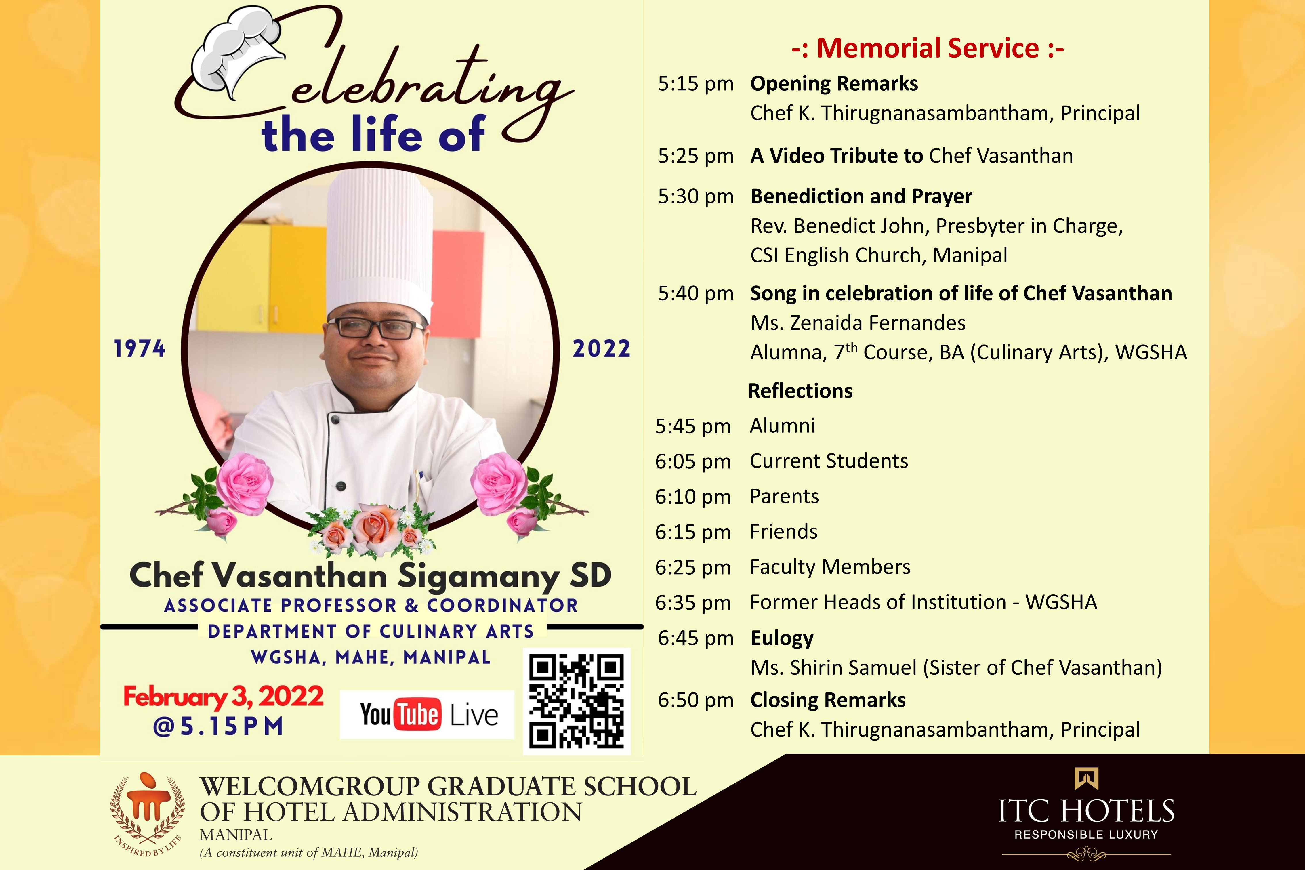 Celebrating the Life of Chef Vasanthan @WGSHA