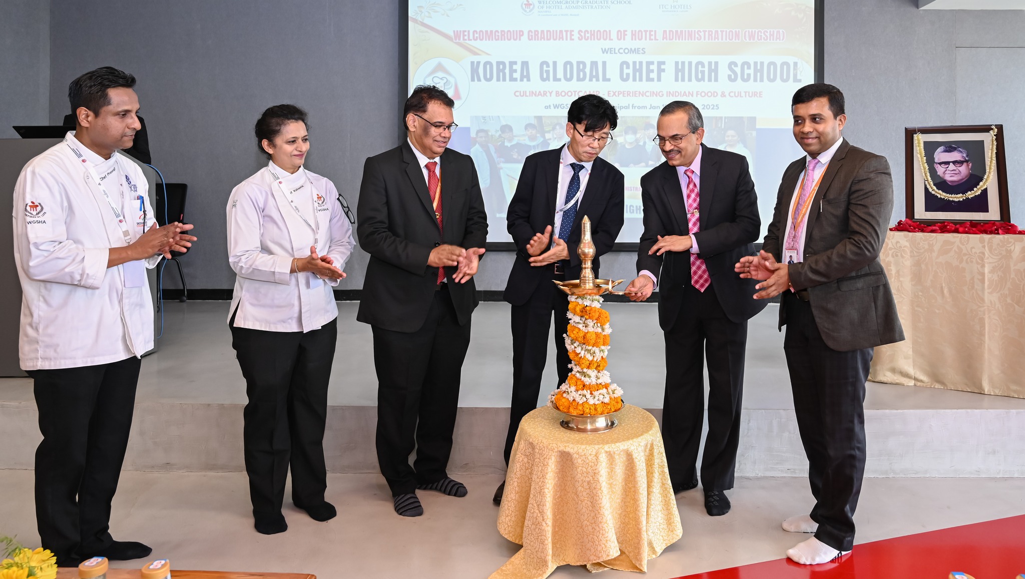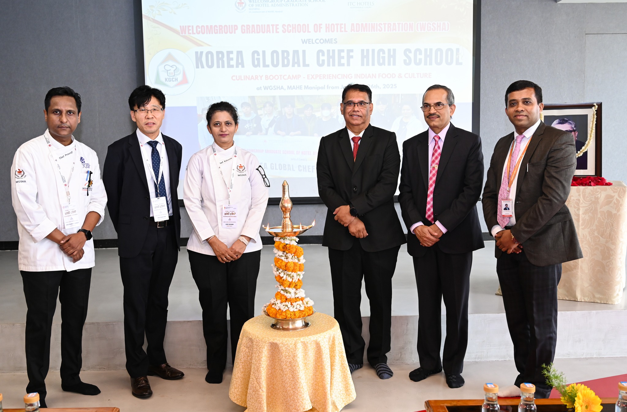 The “Korea Culinary Boot Camp: Experiencing Indian Food and Culture”, a remarkable initiative hosted by Welcomgroup Graduate School of Hotel Administration (WGSHA), MAHE, Manipal, marks the beginning of a dynamic cultural and culinary exchange with the students of Korea Global Chef High School (KGCH). This event underscores our commitment to fostering international collaboration and learning. It is inspired by the visionary dream of Late Dr. T.M.A Pai, the founder of the Manipal Academy of Higher Education, who believed in the power of education to bridge cultures, foster creativity, and nurture global citizenship.