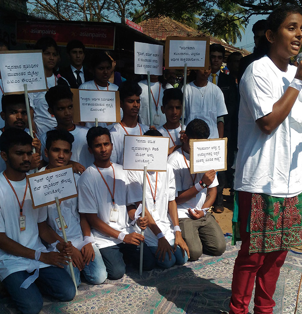 Students of BACA II Semester students join hands a digital financial awareness program which was held by the joint venture of VSO - Manipal Academy of Higher Education, Syndicate Bank, Devadigara Sangha Hiriadka, Kotnakatte Friends Circle and Nartaki Friends Seva Trust on 7th of January 2017, The dignitaries present on that occasion were S S Hegde (Deputy General Manager, Syndicate Bank), Sathish Kamath (Field General Manager, Syndicate Bank), Dr. Anup Naha (Chief Coordinator, VSO), Praveen Kumar (Organizer, Digital Financial Literacy Program). Narayan Sherigar (President, KRDS, Sub-Division Hiriadka), Divakar Bhandary (President, KFC, Hiriadka), Prabhakar Shetty (Nartaki Friends Seva Trust). The program began with the welcome address by Divakar Bhandary. By inaugurating the function Sathish Kamath enlightened the audience about latest online facilities provided by the banks and the thanking of the sponsors for their involvement in the event. The program was then graced by few words by Shri. S S Hegde. Manipal Academy of Higher Education faculties Mr. Praveen Kumar and Ms. Urmila briefed the audience with a presentation on digital literacy. The progam was then concluded with the vote of thanks presented by Mr. Narayan Sherigar. Ms. Anusha M compered the program. Raghavendra G (Asst. Prof, WGSHA) and Ranjan Kelkar (Senior Manager Law, Syndicate Bank) coordinated the program. Before the stage function members of Syndrsetti - Manipal showed street play near Hiriadka auto stand regarding digital awareness. Culinary students of Welcomgroup Graduate School of Hotel Administration actively participated in conducting the event.