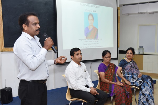 WGSHA organised a farewell function to outgoing staff Prema K Naik senior Housekeeping Staff who worked in the college for 22 years 8 months