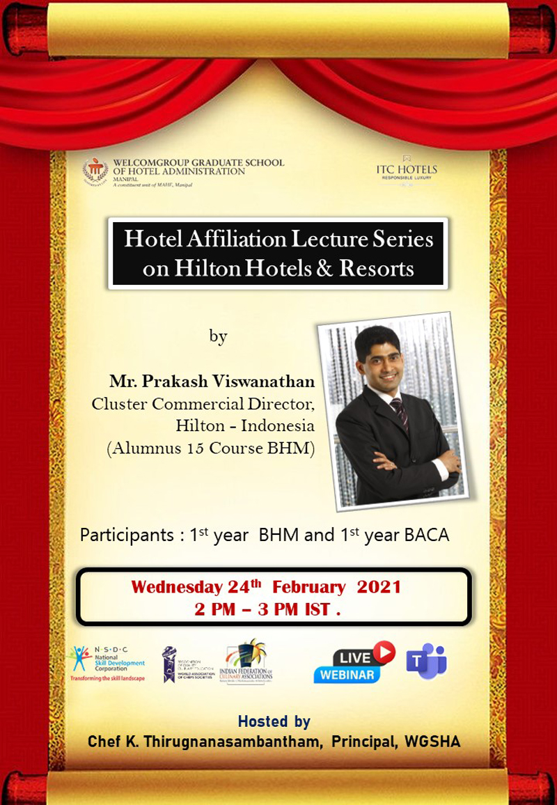 • Virtual cooking demo and lecture on "Food Tourism in India" by Dr. Chef Thiru for School of Hospitality Business Management