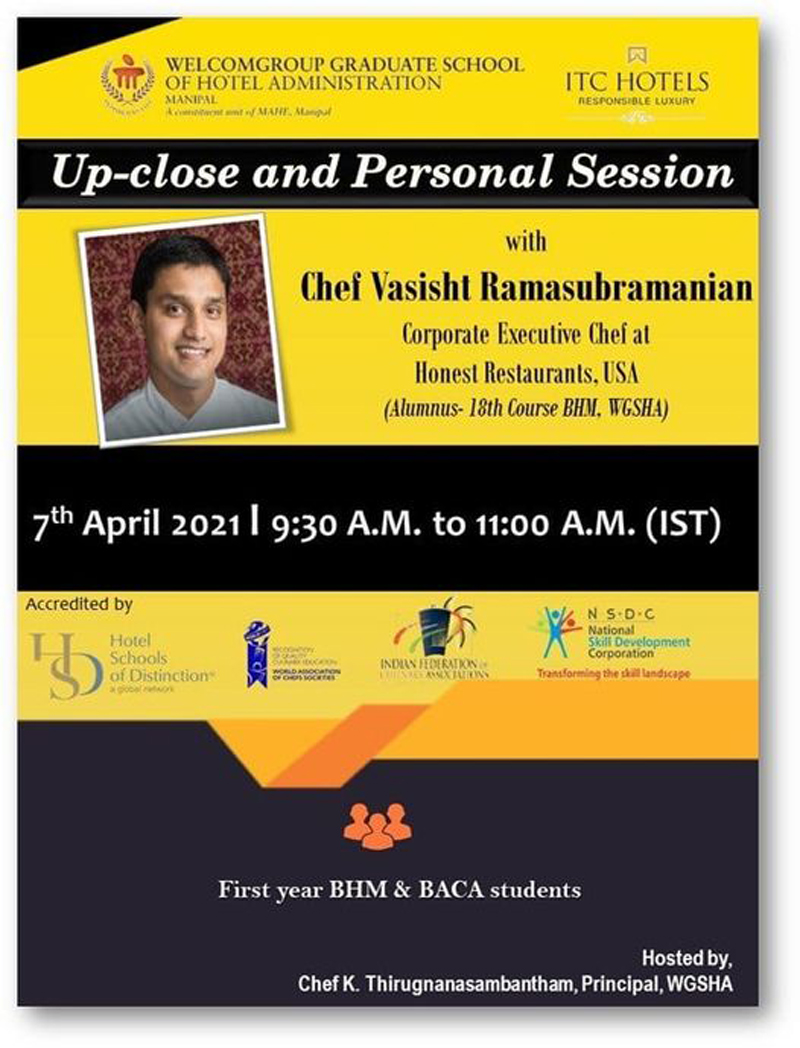 • Up-close and personal Session with Chef Vasisht Ramasubramanian