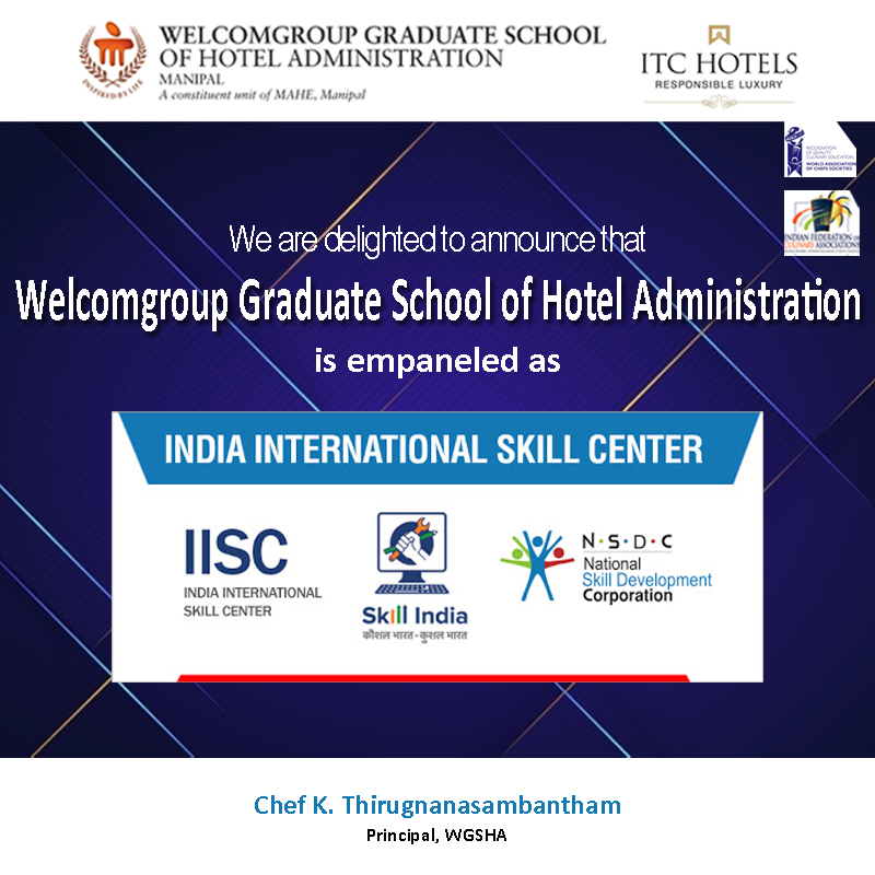 We are pleased to announce that WGSHA has been granted accreditation from the India International Skill Center (IISC) of the National Skill Development Corporation under Ministry of Skill Development & Entrepreneurship, Government of India.